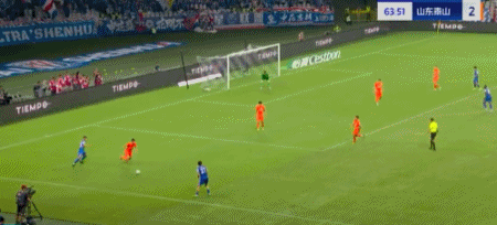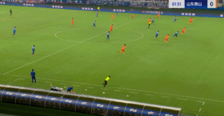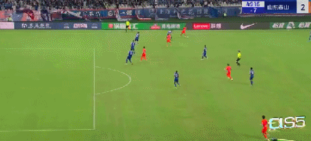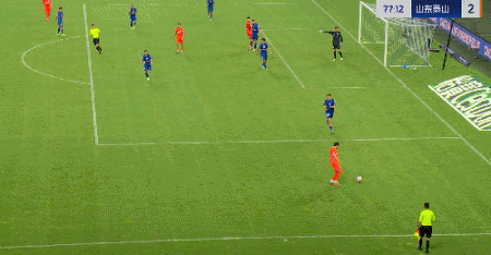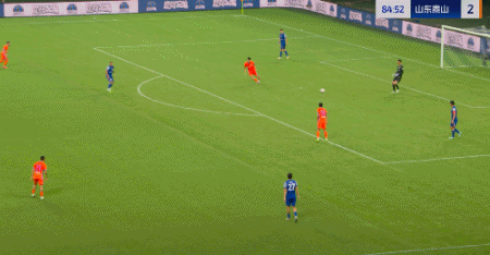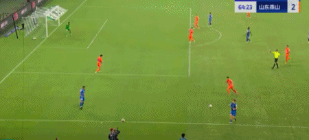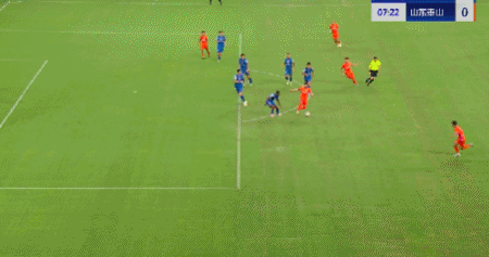 第45+4分钟,7场13球!卡扎轻巧停球后推射破门!山东再度扳平!